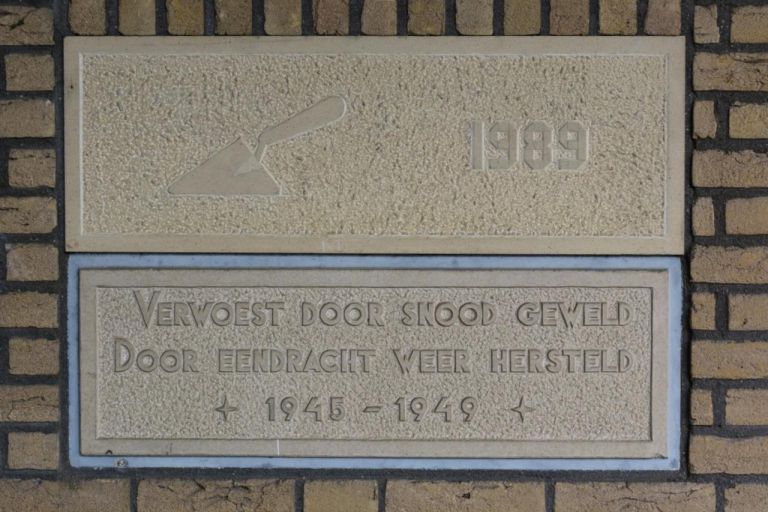 De ingemetselde plaquette bij de huidige zijdeur van De Holtbanck herinnert aan deze gebeurtenissen.